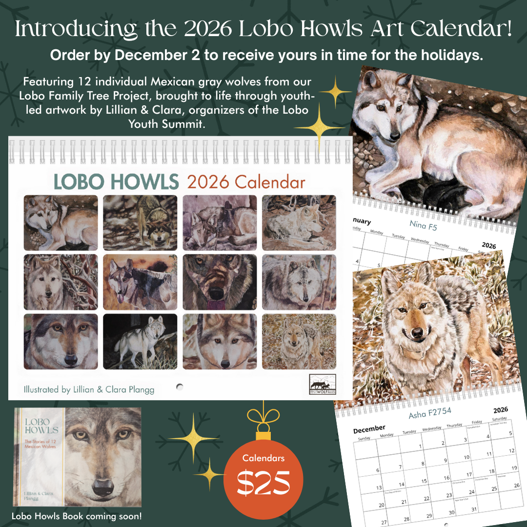 Featuring 12 individual Mexican gray wolves from our Lobo Family Tree Project, brought to life through youth-led artwork and storytelling by Lillian & Clara, organizers of the Lobo Youth Summit.