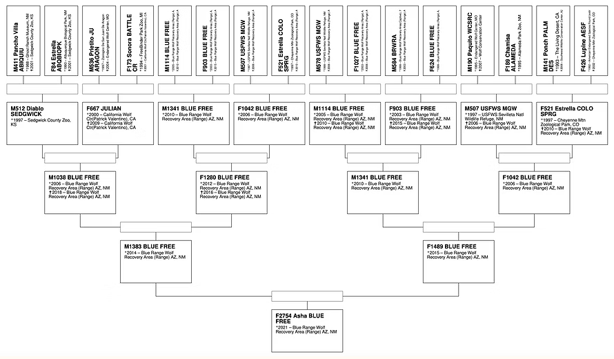 To bring the science to life, we built a family tree for Asha, a young wolf captured after dispersing north of I-40. Her story highlights both the promise and the limits of genetics in recovery. By pairing genetics with public education, we hope to increase awareness of why wolf management is not only a biological issue but also a social one.