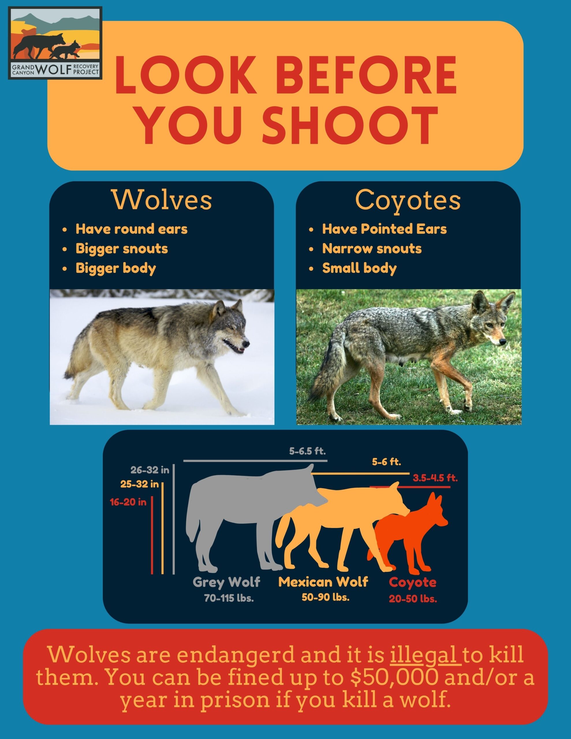 For hunters, our posters emphasize legal protections for wolves and highlight visual and behavioral differences between wolves and coyotes.